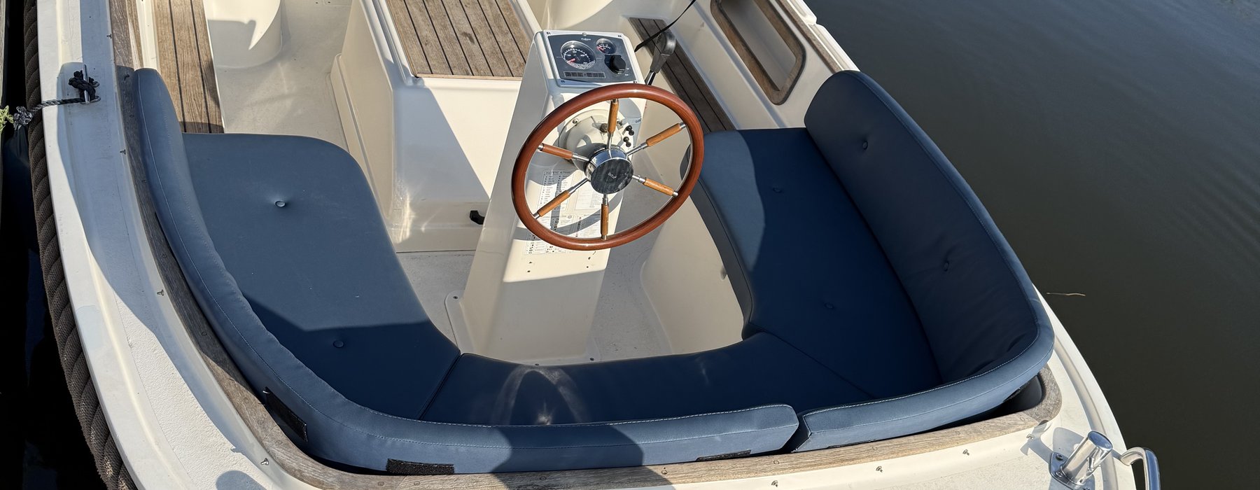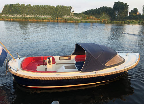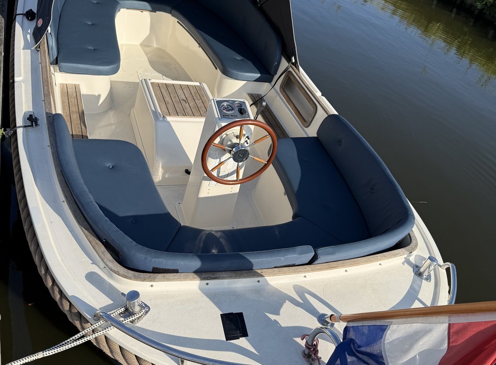 Our Maril 6.25 sloop "Just4Fun" is a robust and very stable sloop that has excellent sailing characteristics. There is room for eight adults on board. With us the Maril 6.25 sloop is equipped with seat and back cushions, spray hood, steering console with steering wheel control, 27 hp diesel engine (2021) and a swim ladder. The seat height provides a lot of comfort, and also for the safety of the children. You do not need to have a boat license for driving our sloops.