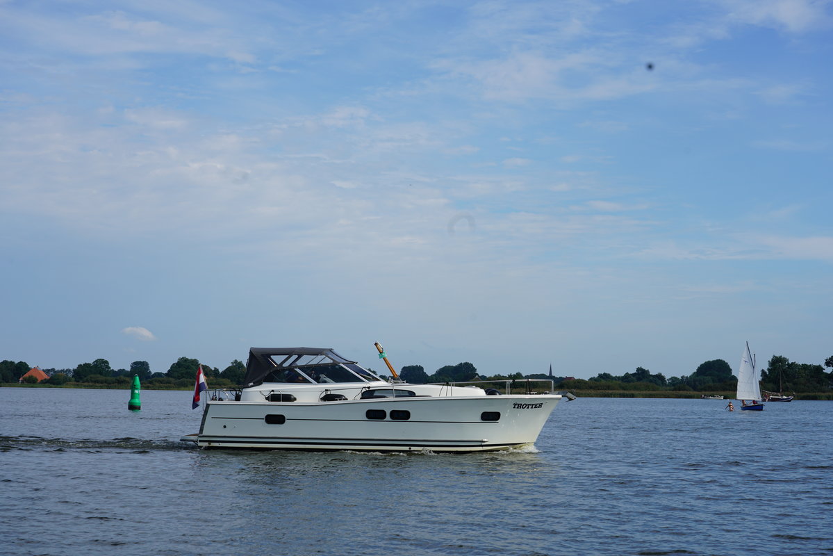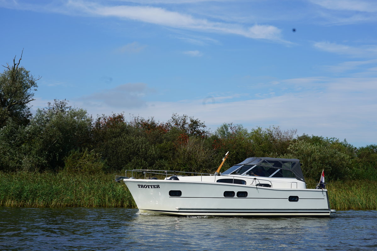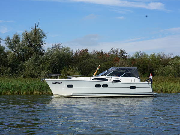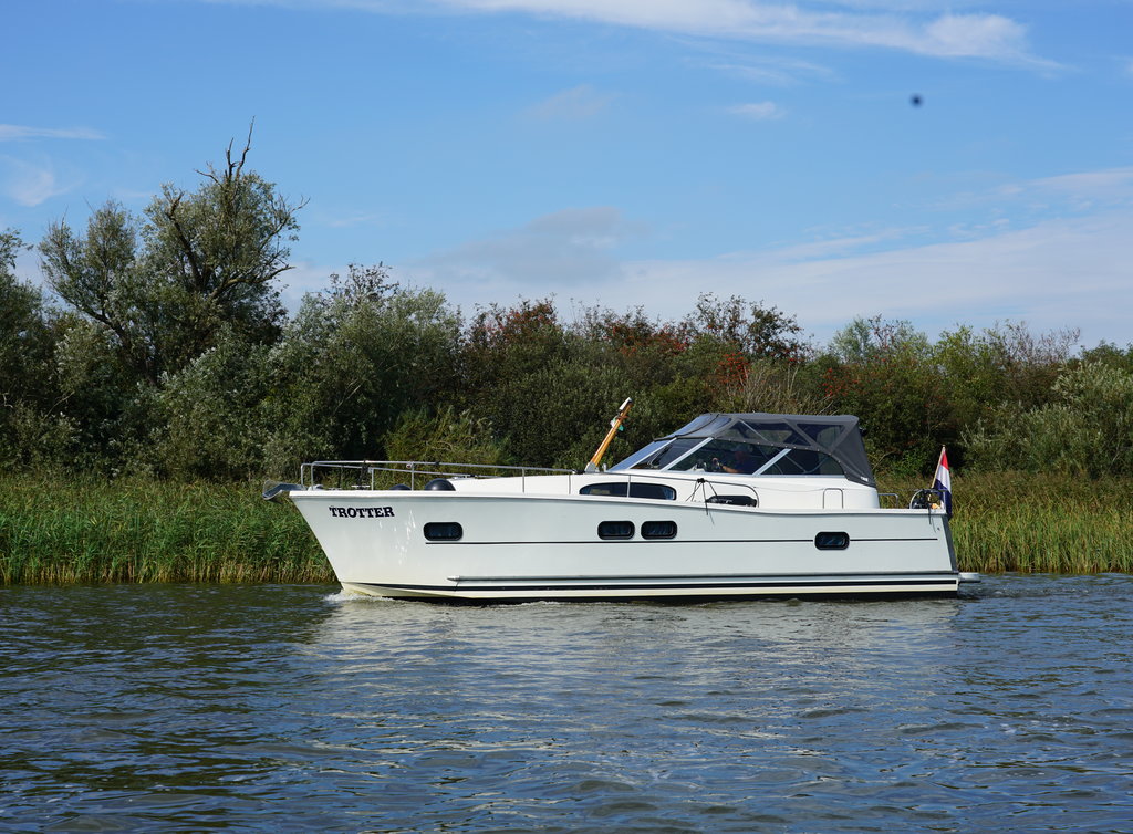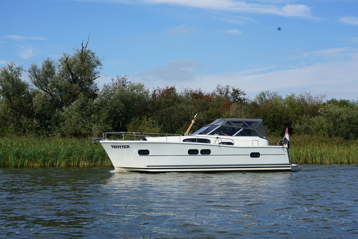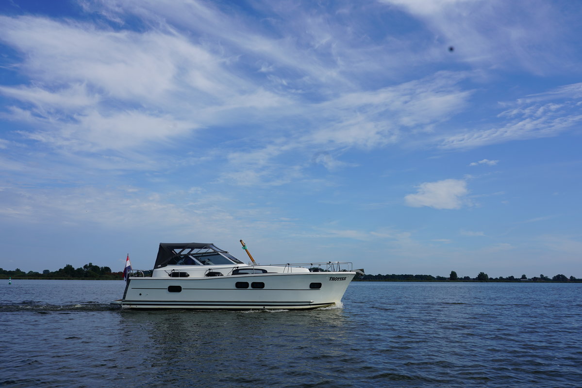 Cabin cruiser Trotter is 10.50 meters and is very suitable for 2-4 people. Rent this luxurious, spacious and easy to maneuver boat and enjoy your next holiday away on the Frisian Lakes! Trotter Type Delphia 1050 Escape