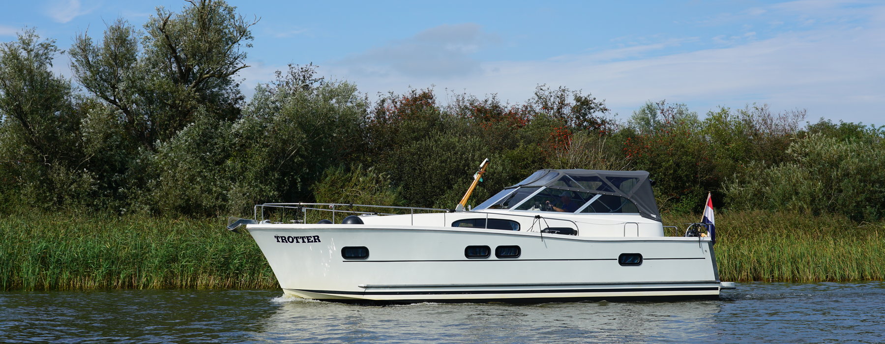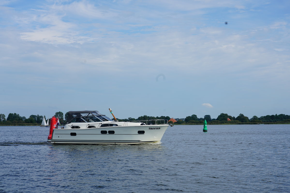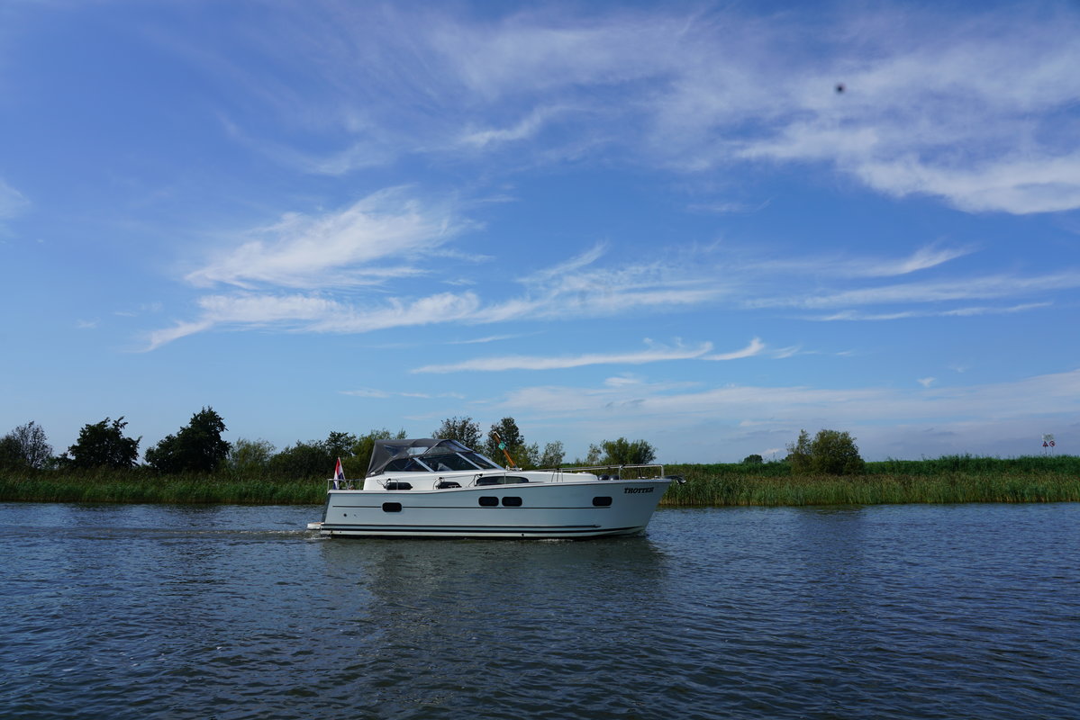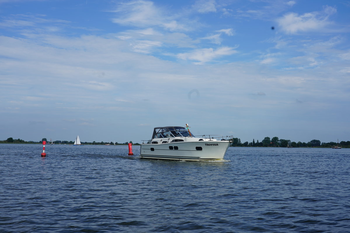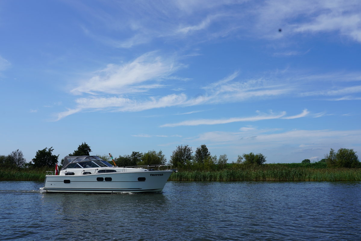 Cabin cruiser Trotter is 10.50 meters and is very suitable for 2-4 people. Rent this luxurious, spacious and easy to maneuver boat and enjoy your next holiday away on the Frisian Lakes! Trotter Type Delphia 1050 Escape
